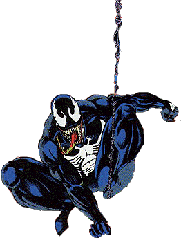 The story of possibly Spiderman�s greatest enemy begins when a space shuttle goes to the moon to trace samples of rocks. When coming back to earth, the shuttle loses control and crashes into a bridge. Reporter Eddie Brock was taking photos of the crash, when all of a sudden, the rock sample( which was a symbiote) came out of the shuttle and went into Eddie�s body causing him to have a dark, skin- like costume which makes him do evil things. With Brock�s previous hatred with Spiderman, he went with the symbiote to kill Spiderman!!! |